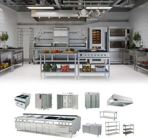 Equipos y accesorios para cocinas industriales y salas de preparación de alimentos.